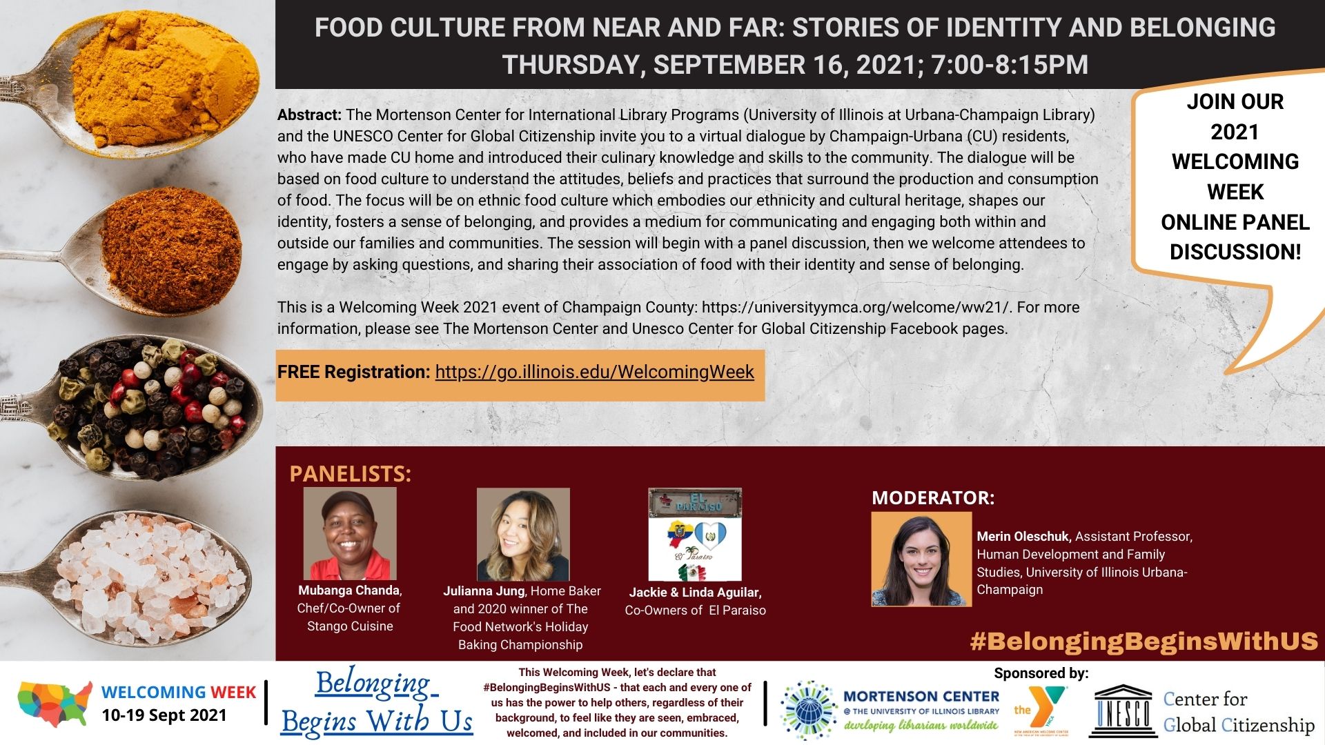 This is a Welcoming Week 2020 event of Champaign County, see https://universityymca.org/welcome/ww20/. For more information, please see The Mortenson Center and Unesco Center for Global Citizenship Facebook Page