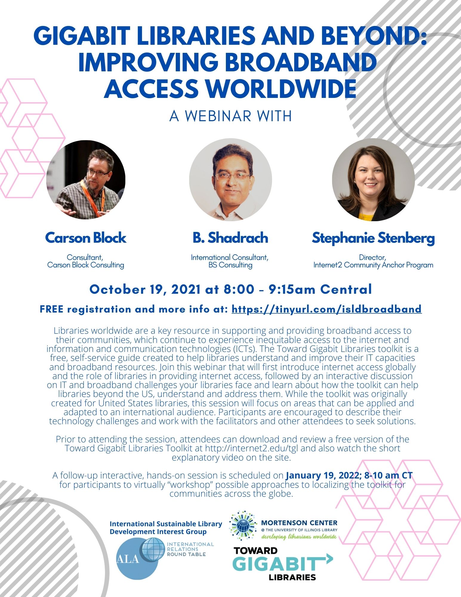 Sponsored by: International Sustainable Library Development (ISLD) Interest Group of the ALA International Relations Round Table, Mortenson Center of International Library Programs, and Association of College & Research Libraries (ACRL)