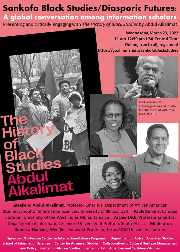 Sankofa Black Studies / Diasporic Futures: A global conversation among information scholars – A Presentation and critical engagement of the book: The History of Black Studies by Abdul Alkalimat (Pluto Press 2021)